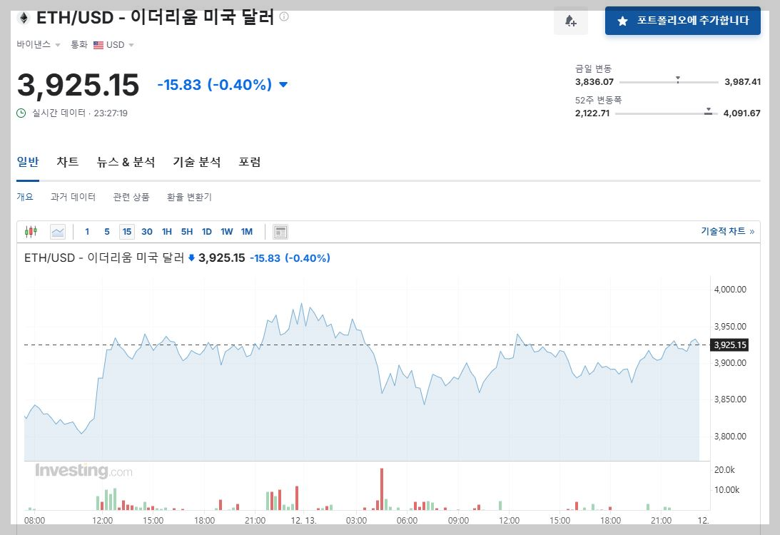 그런데 2024.12.13 기준, 1 ETH는 무려 3920달러, 한화로는 약 562만원에 달하는 금액입니다. 이더리움 스테이킹 최소 갯수인 32ETH는 한화로 약 1억 8천만원에 해당합니다.